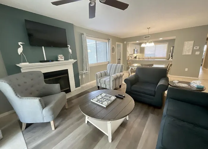 The 2-bedroom villa is within 25 km of Myrtle Beach International airport and 4.8 km from such cultural points of interest as the Master's Editions Barefoot Landing Gallery. Ultimate California Pizza is a 10-minute drive from the 2-bathroom villa, while the large Barefoot Landing Shopping Complex is a 15-minute ride away. The nearby educational landmarks include Risen Christ Lutheran Church and Private School, which is situated 4.5 km from this Myrtle Beach property.